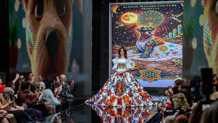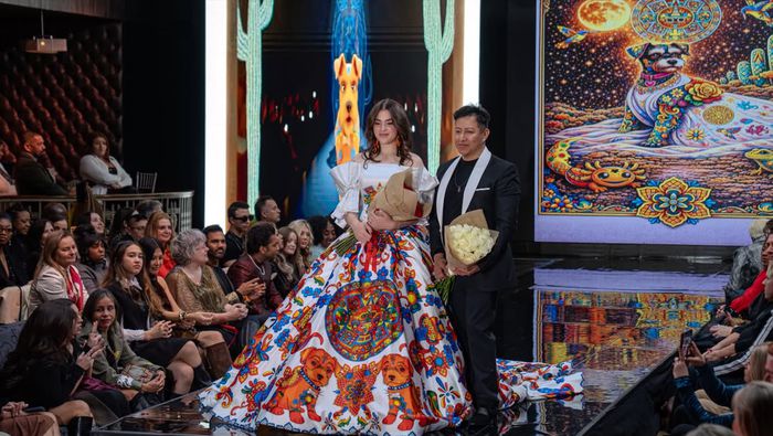 Emily lució un vestido que forma parte de esta línea inspirada en la perrita del diseñador, una schnauzer con un “espíritu inquebrantable, profunda inteligencia y serena fortaleza", explicó Alonso Máximo en su cuenta de Instagram.