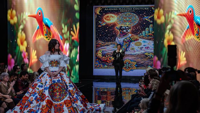 La joven fue la encargada de portar uno de los vestidos más representativos de la colección titulada ‘Morelia’, una propuesta con una fuerte carga emocional.