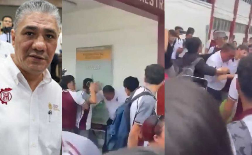 Imágenes impactantes circulan en redes sociales sobre la brutal golpiza que estudiantes del Cetis 78 de Altamira le propinaron al director del plantel, Julio César Barrón, a quien acusan de presunto acoso sexual contra alumnas.