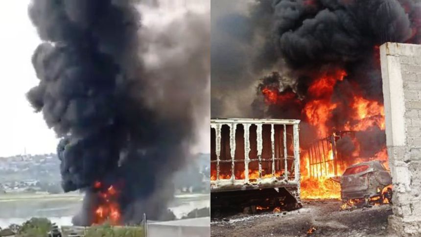 EN #COYOTEPEC, SE REGISTRÓ EL #INCENDIO EN UN #PREDIO DONDE #ALMACENABAN #COMBUSTIBLE #ROBADO...