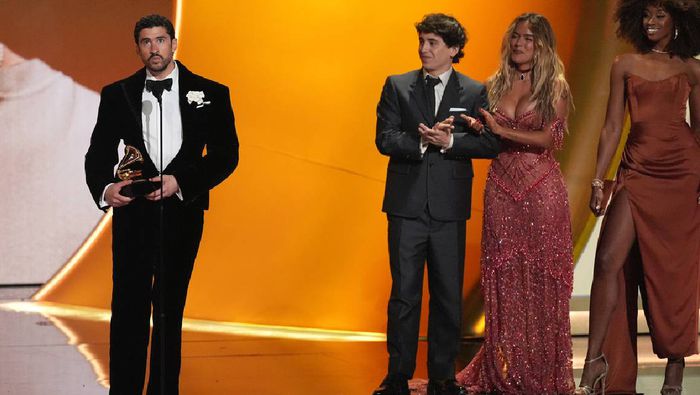El reconocimiento fue en la categoría de Mejor Álbum de Música Urbana por DeBí TiRAR MáS FOToS, momento que aprovechó para levantar la voz en nombre de los latinos, quienes desde la segunda llegada de Donald Trump a la Casa Blanca en 2024 han sido afectados por políticas migratorias, incluidas deportaciones masivas de indocumentados.