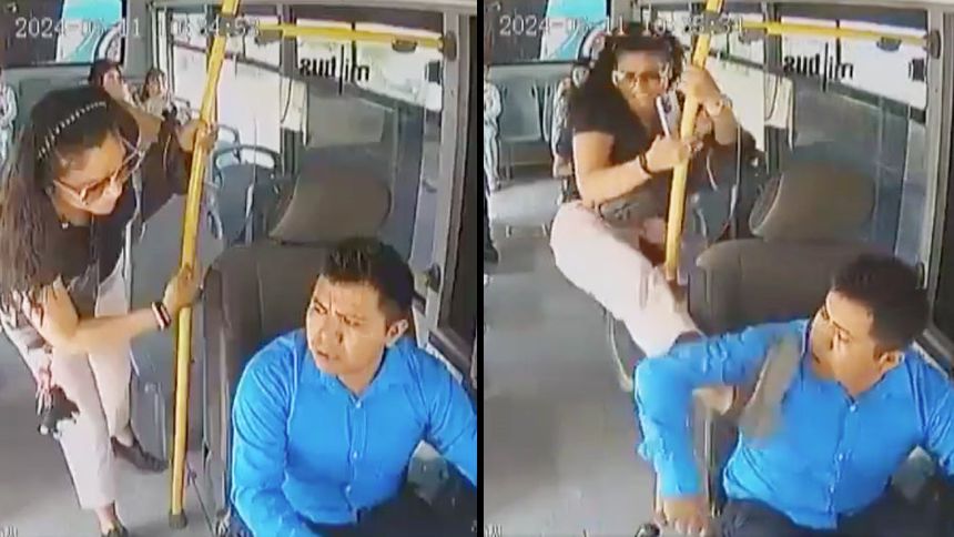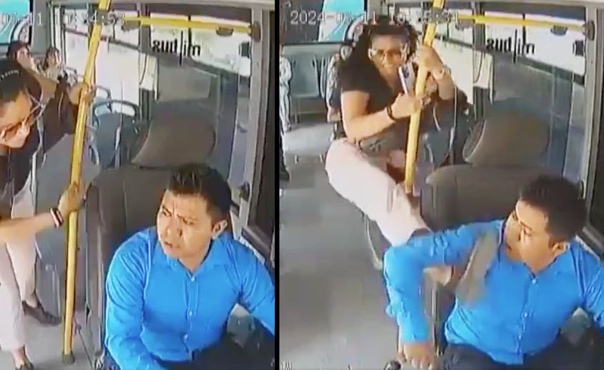 Esas palabras hizo que la mujer explotara más, por lo que usó el asiento como base para lanzarle unas patadas y seguir insultándolo. El chofer le advierte a la pasajera que sus acciones están siendo grabadas, pero eso no le importar pues las groserías nunca pararon.