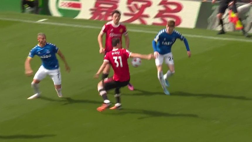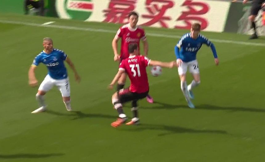 Corría el minuto 28 de juego cuando los Red Devils ya perdían por la mínima, y un balón dividido cayó justo en el sector donde se encontraba Nemanja Matic, quien no logró controlar bien el balón y éste le pegó en la mano, desatando el reclamo del propio Maguire.