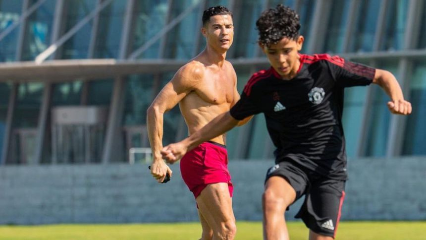 Cristiano Jr. aprende de su papá cada día más, y es que Cristiano Ronaldo, jugador del Manchester United y su hijo entrenan juntos en algunos momentos, preparaciones que están sirviendo para que el descendiente de CR7 llegue lejos dentro del futbol.