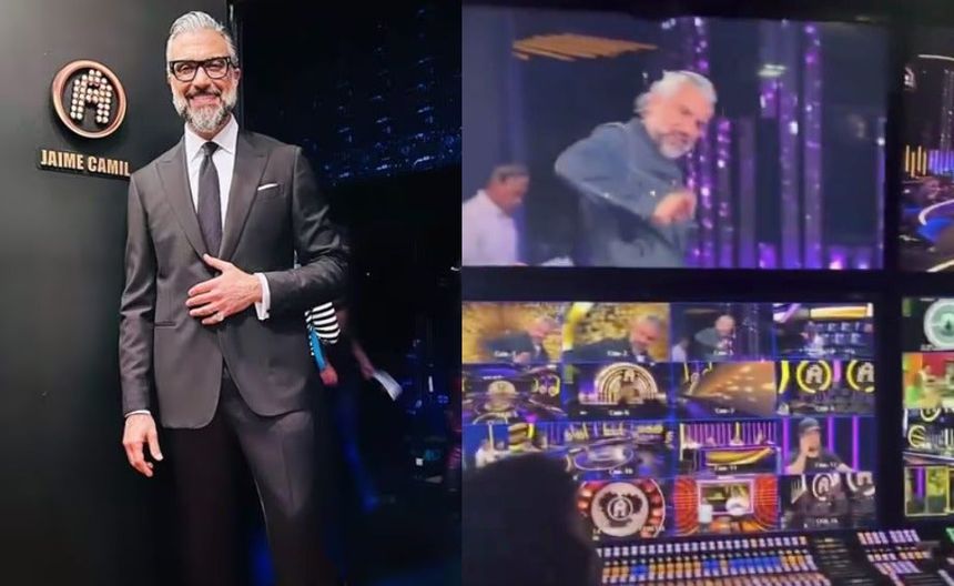 En redes sociales se está haciendo viral un video del conductor del reality show, La Academia, Jaime Camil, haciéndole una señal obscena al productor Andrés Tovar.