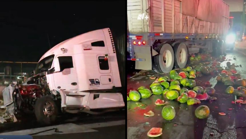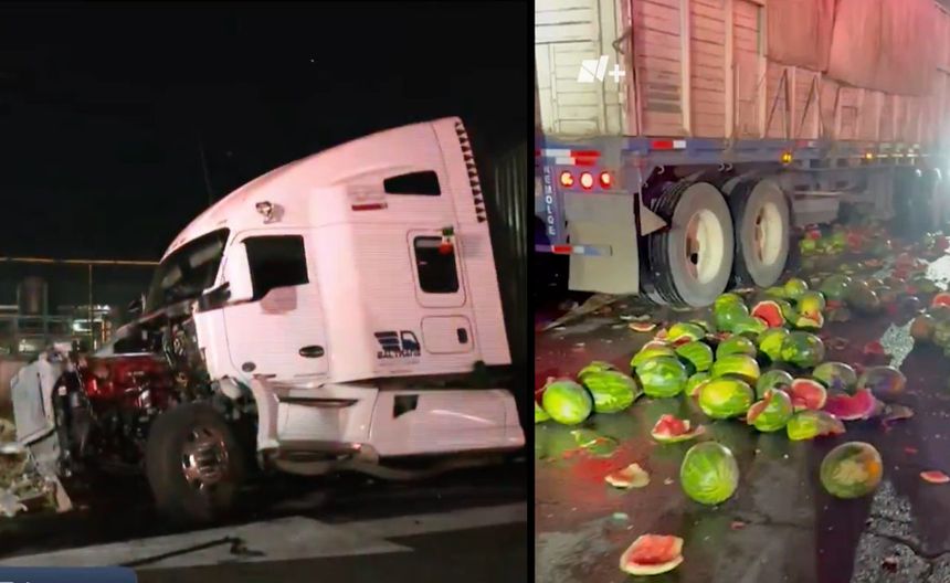 “El tráiler transportaba varias toneladas de sandía, mercancía que quedó esparcida en la zona de la caseta tras el impacto”, detallan los reportes. Las labores de limpieza fueron complicadas y se utilizaron grúas de gran capacidad para despejar la vialidad.