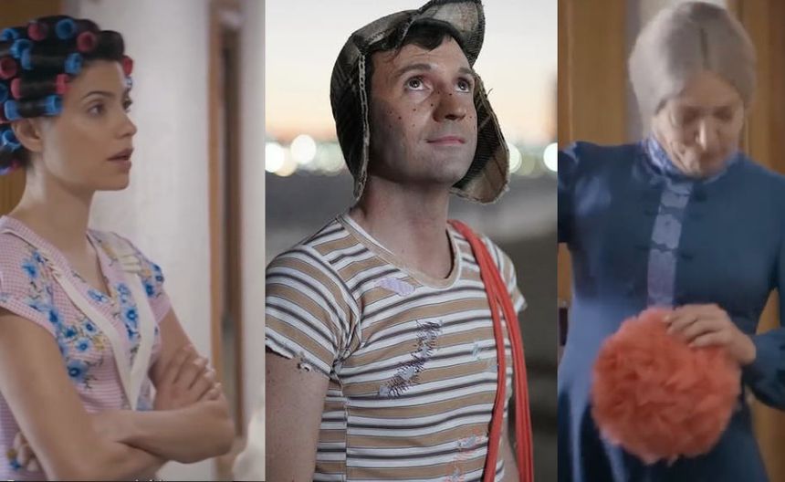 La primera en entrar a escena es Doña Florinda, que será interpretada por la actriz Bárbara López y en la parte de atrás aparece la Bruja del 71, que será Andrea Noli. Y por último sale medio rostro del actor Pablo Cruz, dándole vida a Roberto Gómez Bolaños.