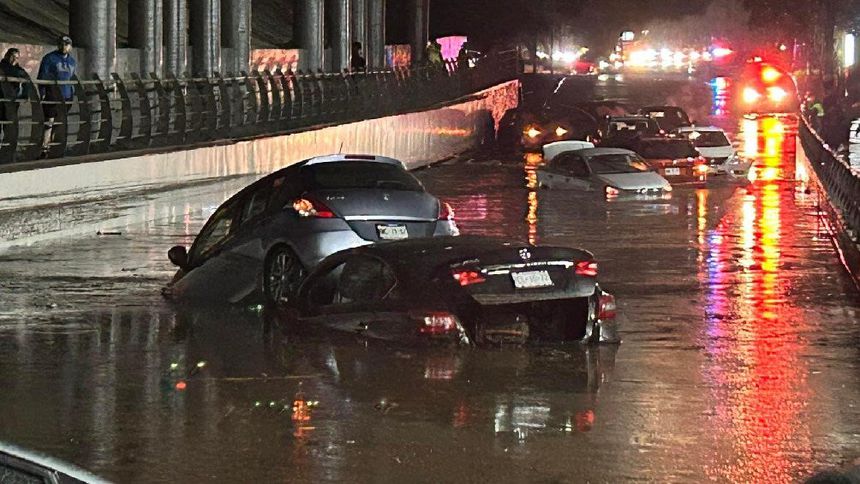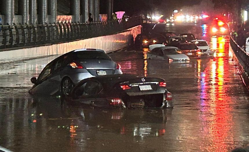 Por medio de las redes sociales, se muestra como los autos quedaron flotando en un paso a desnivel, sin que se reportaran heridos. También camiones de pasajeros se vieron detenidos pues el agua les llegó hasta el motor.