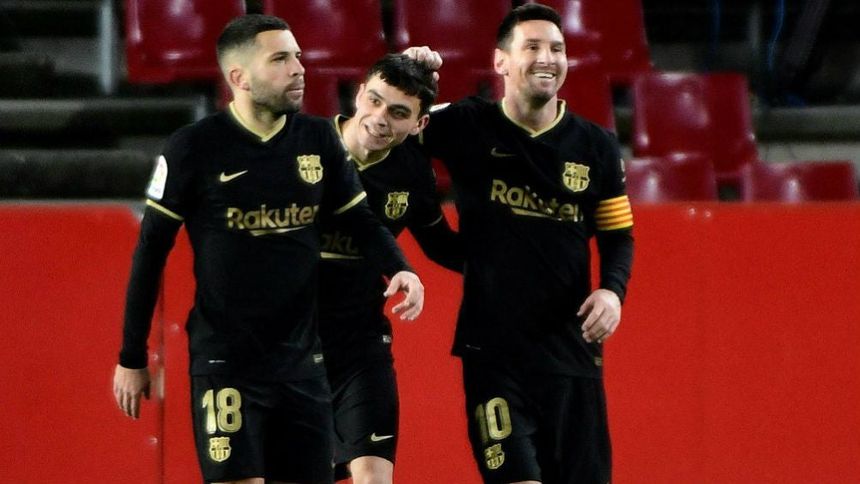 Messi se reencontró con el acierto a balón a parado con un potente lanzamiento pegado al palo que trataba de tapar Rui Silva en un libre directo muy cerca del área tras una falta del camerunés Yan Eteki a Pedri que tampoco vieron clara los rojiblancos.