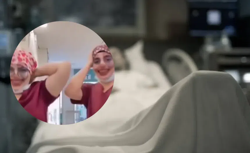 En la grabación, las médicas aparecen con uniforme clínico y cubrebocas, mientras el filtro digital les distorsiona el rostro. Al mismo tiempo se escuchan los lamentos de una paciente que aparentemente estaba siendo atendida en esa zona hospitalaria.