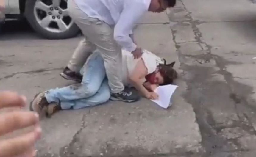 La mujer cayó a un costado de la camioneta | ESPECIAL