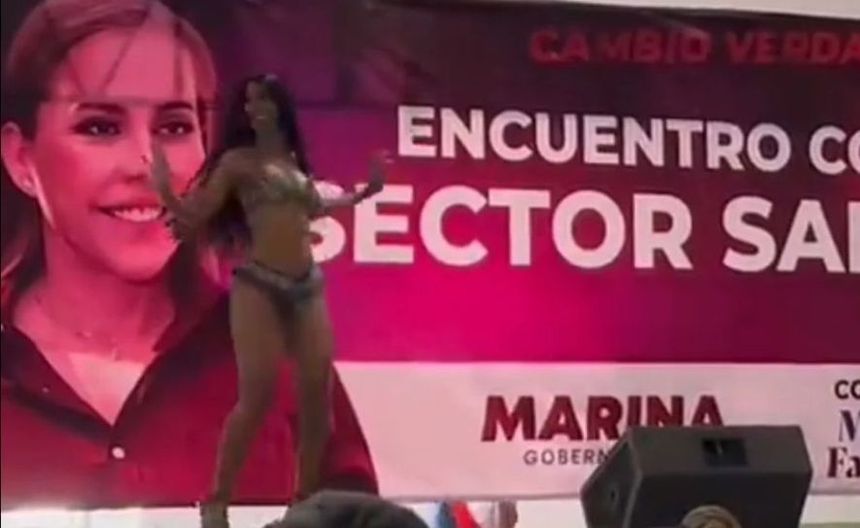 La candidata de Morena a la gubernatura de Durango, Marina Vitela, recibió duras críticas en redes sociales, luego de que se hiciera viral un video en donde se aprecia a una mujer bailando en bikini durante un evento..