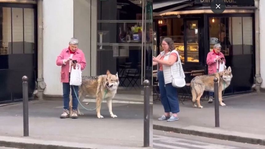 En redes sociales, se hizo viral el video de una mujer paseando un lobo en las calles de París.