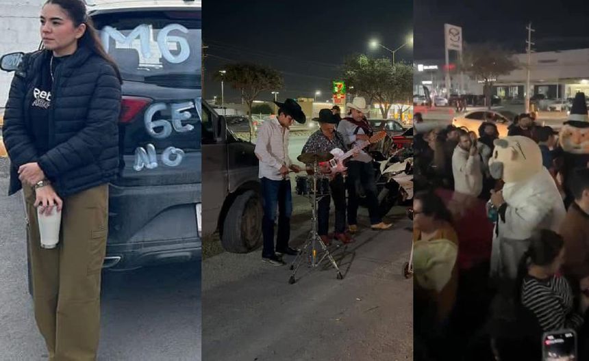 Poco a poco la gente la gente fue llegando con cosas para armar primero una carne asada y carteles contra la agencia de autos. Pero después llegó otro grupo con mariachis, luego tocaron unos norteños y al final con una bocina se armó la fiesta completa.
