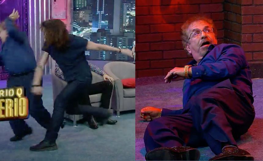 El comediante empezó aventando al conductor, quien tomó vuelo para darle un ‘puñetazo’ para mandarlo directo suelo: "No se vuelva a pasar conmigo, yo juego hasta cierto punto, nada más, así más ya no”, dijo exaltado Burgo ante la mirada sorprendida de los presentes.
