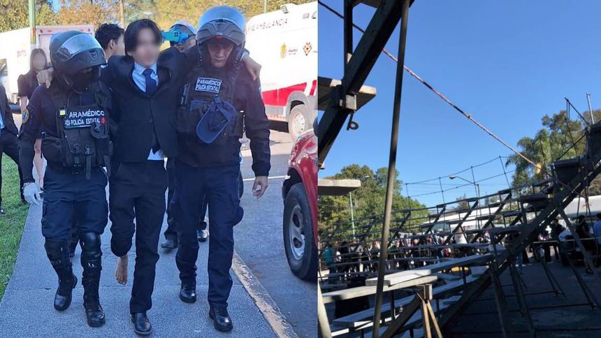 La estructura tipo grada en la que estaban parados colapsó, provocando la caída de los jóvenes y dejando un saldo de 18 alumnos lesionados.