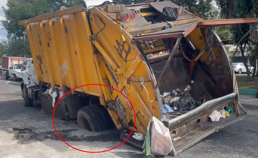 VIDEO / Otro socavón en CDMX: ahora se hundió un camión de basura en Gustavo A. Madero