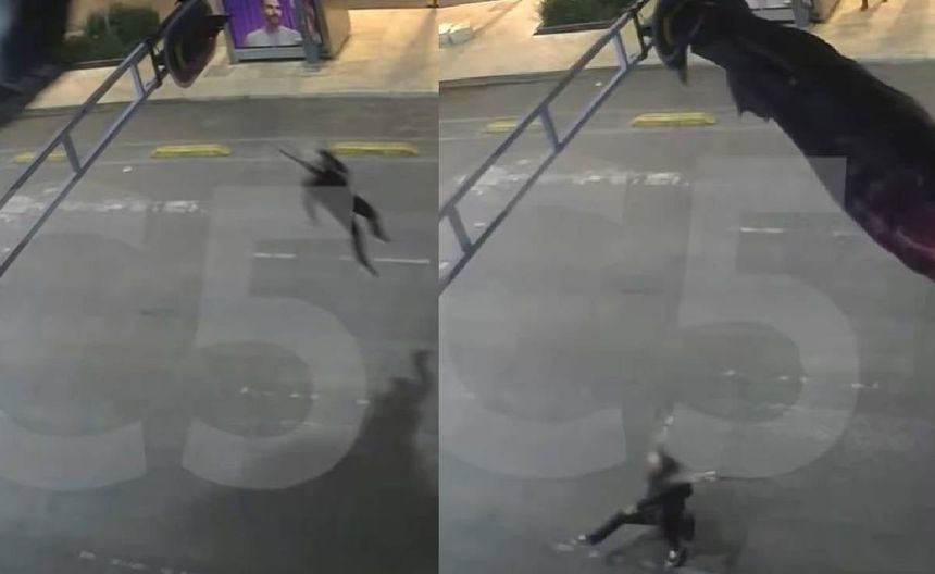 En el video de 31 segundos que circula en redes, se observa cómo el hombre queda suspendido y, gracias a que el paracaídas se detuvo en el semáforo, no impactó contra el asfalto ni sufrió lesiones.