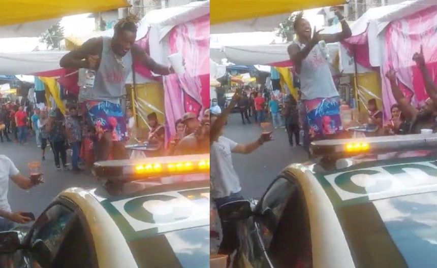Un hombre en estado de ebriedad y con una cerveza en la mano se puso a bailar encima de la patrulla