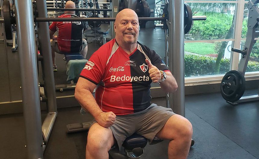 El narrador de TUDN, en el gimnasio con la playera del Atlas | TWITTER @enriquebermudez