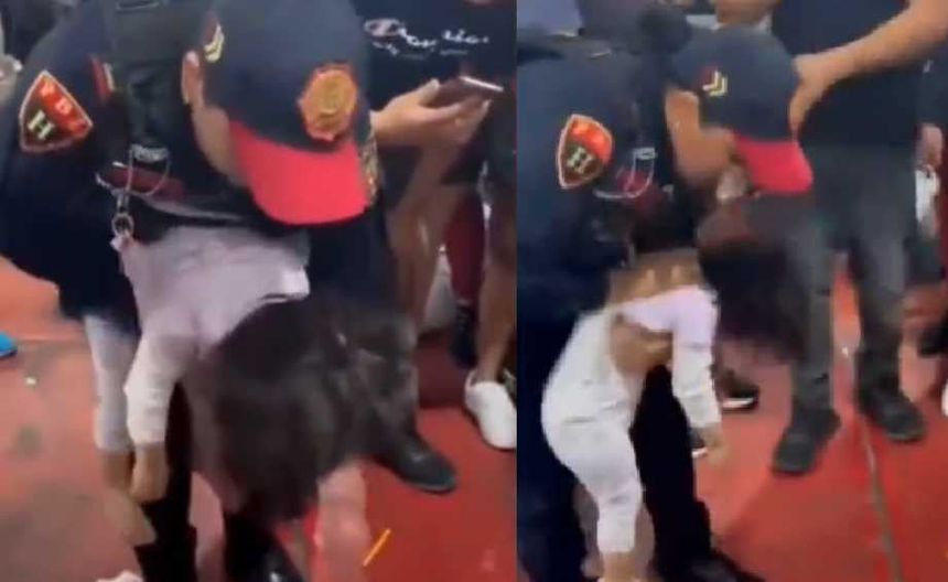 En una segunda parte del video, ya dentro de un cubículo, la policía logra estimular a la niña para salvarle la vida. “¡Ya está respirando, ya está respirando!”, dice la policía, mientras que se escucha a otra voz comentar que la pequeña estaba ingiriendo una paleta antes de ahogarse.