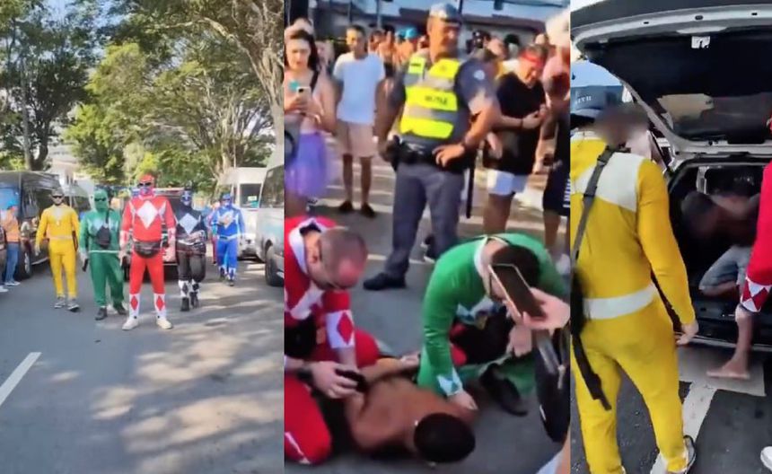 VIDEO: Policía se disfraza de los Power Rangers para detener ladrones en Carnaval de Brasil