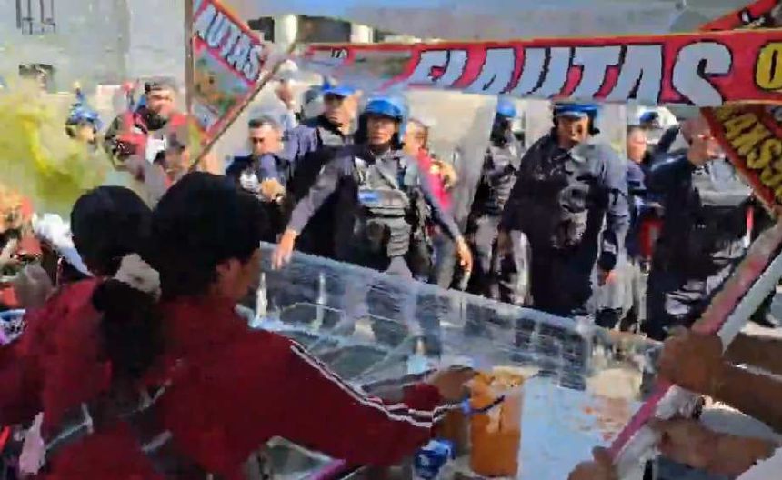 Ante la negativa de los comerciantes se desató una discusión que poco a poco fue subiendo de tono, luego de que las autoridades buscaban llevarse los puestos ambulantes de comida, reaccionando los vendedores informales con empujones, golpes y hasta aventando la sala verde y roja que tenían en botes, mientras que un policía en particular se llevó un charolazo en la cabeza.