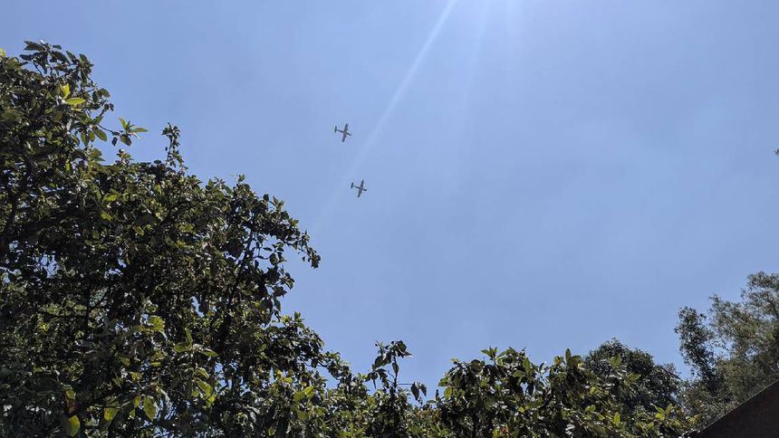 Vecinos comentan haber escuchado muy fuerte el paso de aviones hace unos momentos; algunos señalan que podrían ser aeronaves militares.
