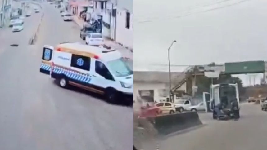 VIDEO: Sale volando enfermo de una ambulancia que manejaba a exceso de velocidad
