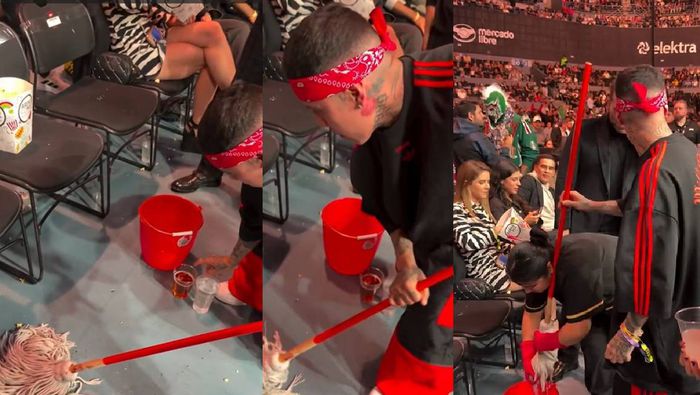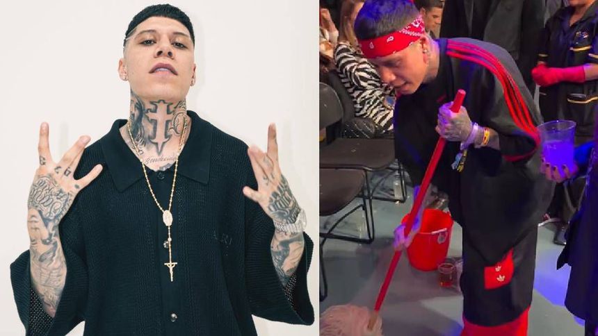 En redes sociales se volvió tendencia el nombre del rapero mexicano Santa Fe Klan, luego de que durante su visita al evento de UFC México el pasado fin de semana tuvo un gesto que muchos calificaron como humilde: ayudó a una empleada de limpieza a trapear un líquido que él mismo había derramado.