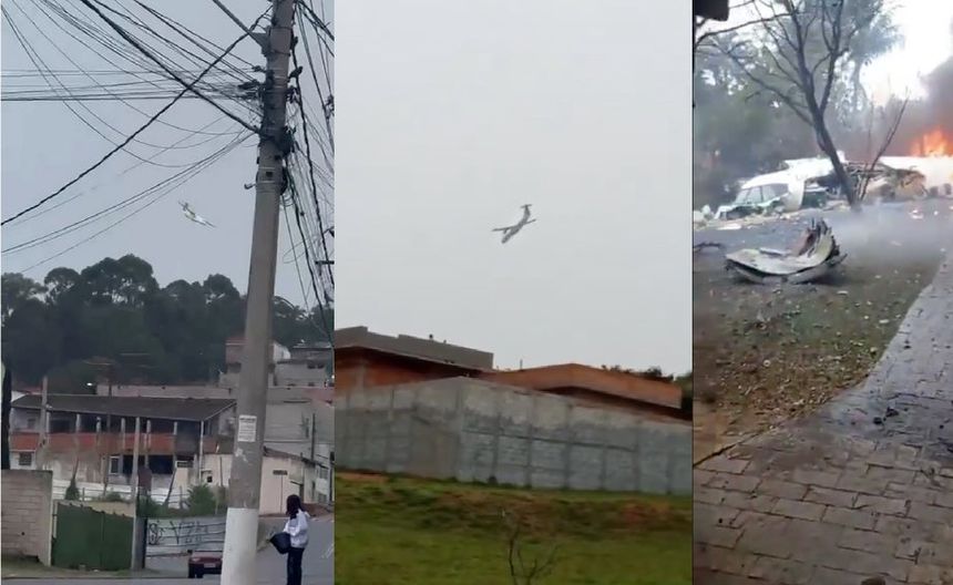 La televisión brasileña GloboNews mostró imágenes aéreas de una gran zona en llamas y humo saliendo del aparente fuselaje de un avión entre viviendas en una zona residencial. Imágenes adicionales reveladas minutos antes por GloboNews mostraron un avión girando en espiral en su caída.
