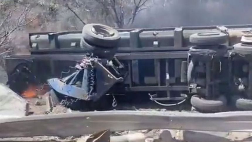 El camión transportaba cemento y tras la volcadura se comenzó a incendiar, no se han registrado muertos