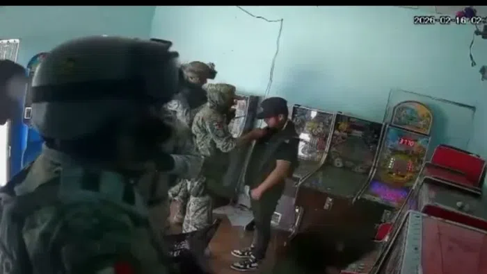 De acuerdo con la información que acompaña el material, los hechos ocurrieron el 16 de febrero de 2026 dentro de un local de máquinas tragamonedas. La cámara instalada en la llamada “maquinita 1” captó el momento en que los elementos ingresan al establecimiento alrededor de las 2:02 de la tarde y cierran la puerta antes de iniciar el operativo.