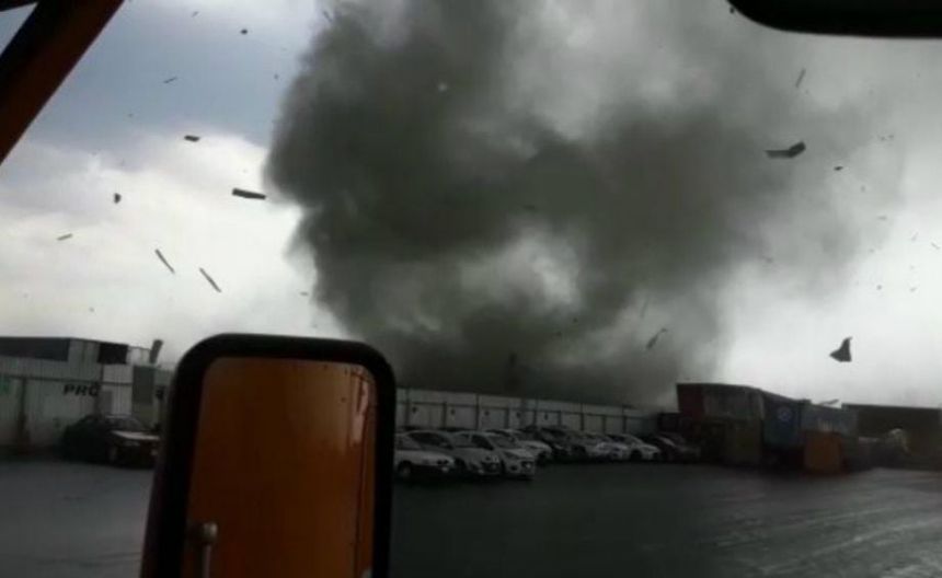 El tornado, ya pronosticado por el Sistema Meteorológico Nacional como fuertes vientos a causa del Frente Frío 60, cobró la vida de una víctima que, de acuerdo con Reporte Indigo, se trata de una guardia de seguridad que se encontraba en una nave industrial y habría sido proyectada contra un anuncio.