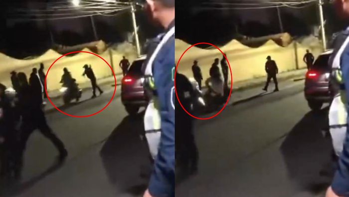En la grabación se aprecia cómo varios conductores intentan evadir el punto de revisión instalado por elementos de la Secretaría de Seguridad Ciudadana (SSC). Instantes después, un oficial se aproxima a un motociclista y lo empuja, provocando que el conductor y su unidad terminen en el suelo.