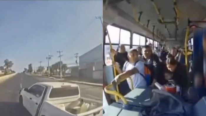 En la grabación se observa cómo los hombres armados le marcan el alto al autobús. Sin embargo, el conductor no se detiene y continúa avanzando. En segundos, cuando los sujetos aparentemente intentan descender para amedrentar al chofer y a los pasajeros, el operador maniobra para esquivarlos, les impacta una primera vez y posteriormente los proyecta contra el muro de contención que divide los carriles.