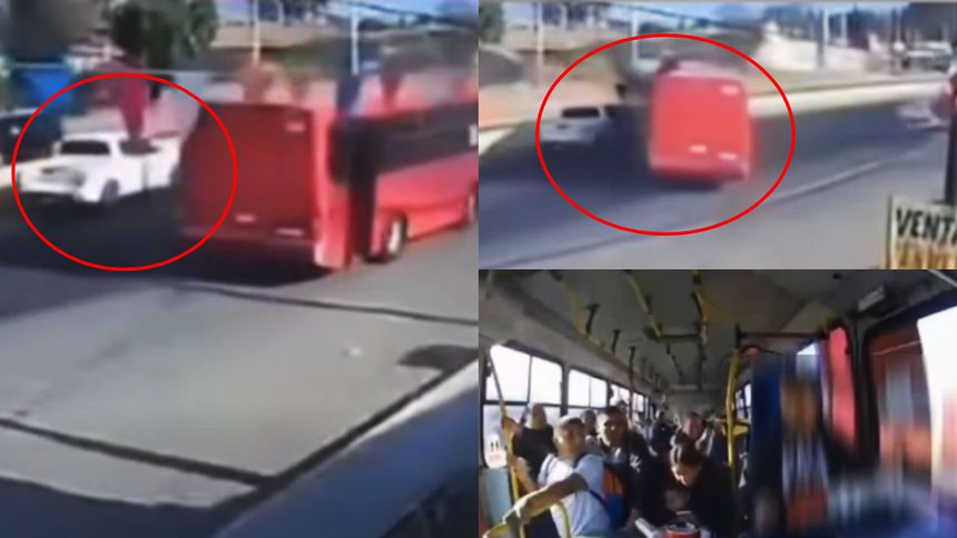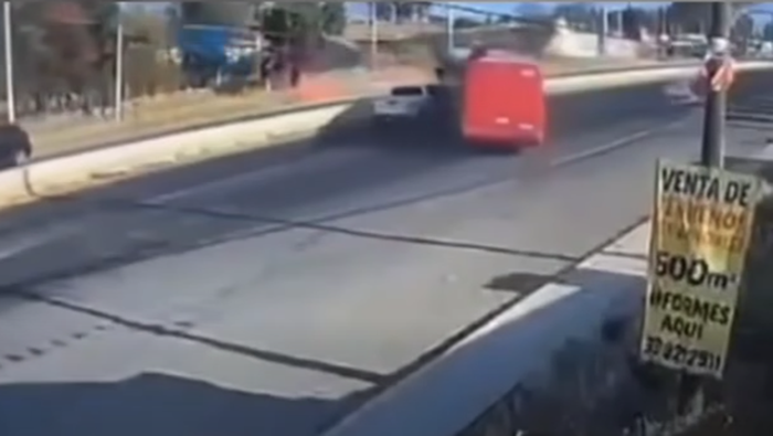 El chofer logra esquivarlos, pero se le emparejan de nuevo y es cuando los embiste y deja la camioneta sobre un muro contención. Todo esto frente la mirada de los pasajeros.