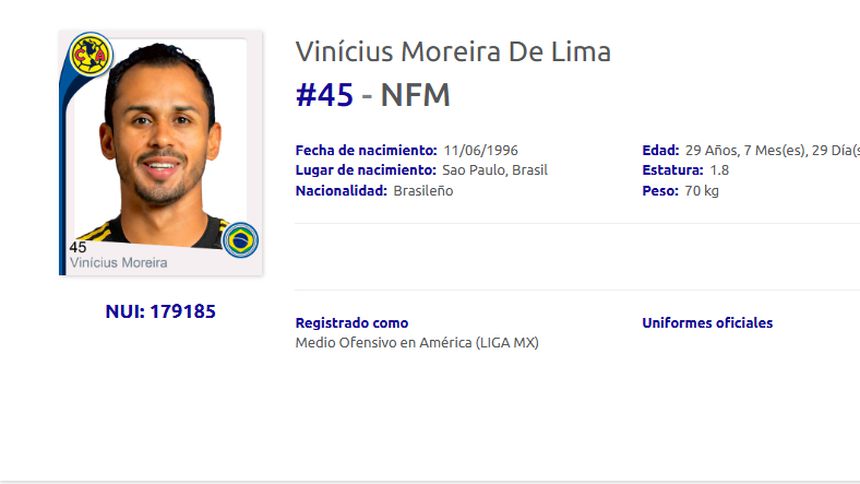 El más reciente jugador brasileño de América no tuvo problemas para escoger su próximo dorsal, ya que al igual que en Fluminense, el sudamericano utilizará el 45, mismo con el cual ya aparece en la página oficial de la liga, aunque hay un detalle extra del cual no se ha hablado mucho.
