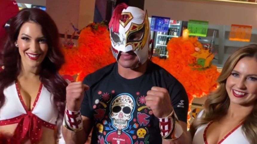 En un video difundido por el mismo CMLL y los Cards se puede observar al Depredador del Aire al lado de un par de porristas del equipo de la NFL cuando la mascota de Arizona llega con una caja sorpresa.