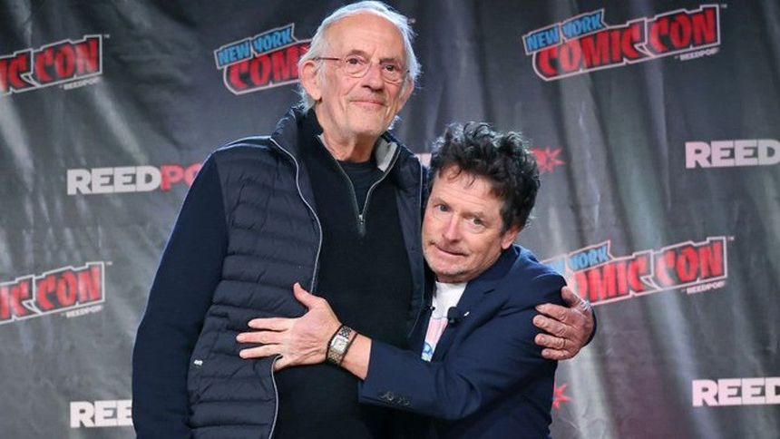Los actores Michael J. Fox y Christopher Lloyd de la trilogía ‘Volver al futuro’ se reencontraron en la Comic-Con de Nueva York.