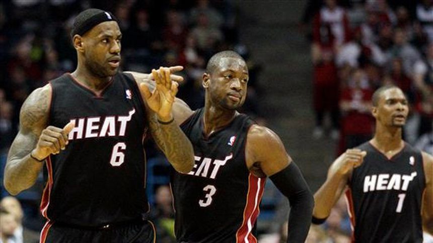 LeBron James agregó 17 puntos y Chris Bosh tuvo 16 puntos y 12 rebotes y Miami organizó una ofensiva de 17-2 en el primer tiempo para tomar el control del partido, y luego lograron superar un período de cuatro minutos y medio sin anotar en el cuarto período antes de que James, Wade y Bosh anotaran tiros cruciales en los últimos minutos para llevarse la victoria.