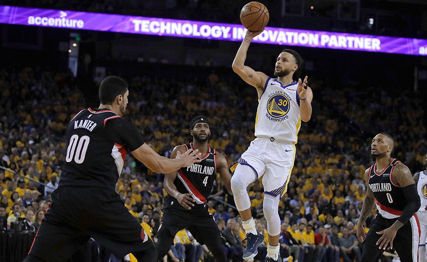 Stephen Curry metió nueve triples y anotó 36 puntos para que los Golden State Warriors arrollaran este martes 116-94 a los Portland Trail Blazers en el primer juego de la Final de la Conferencia Oeste.