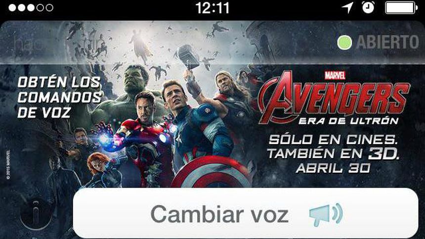 — Waze en español (@waze_es) marzo 24, 2015La aplicación para celular, que facilita las rutas más oportunas para huir del tráfico, desplegará una opción con la cuál se podrán recibir las indicaciones viales con las voces de los protagonistas de la nueva cinta, como Iron Man, Capitán América, Hulk, entre otros.