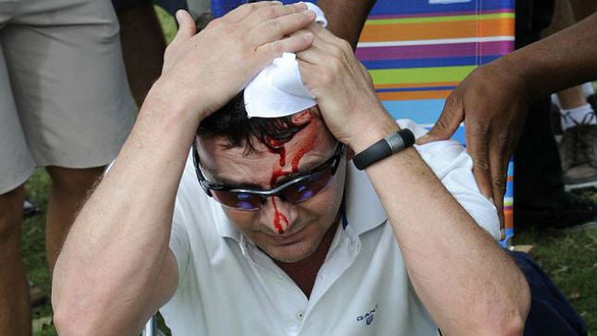 La pelota impactó de lleno al espectador alemán, a tal grado de ocasionarle una gran herida; por lo que al percatarse de la hemorragia, Woods se acercó al lugar del accidente para ofrecerle disculpas y un demostrar un buen gesto de su parte, al firmarle uno de sus guantes.