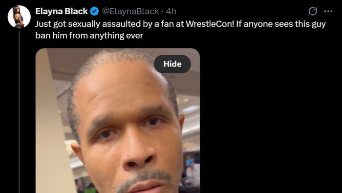 Acabo de sufrir una agresión sexual por parte de un fan en WrestleCon. Si alguien ve a este tipo, que le prohíban la entrada a cualquier evento