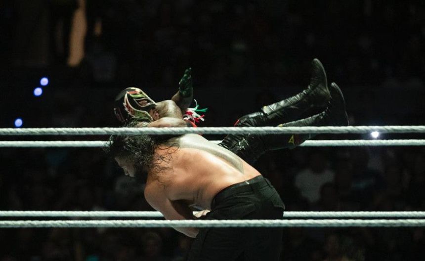 Por más intentos que tuvo, Rey Mysterio no pudo poner espaldas planas a Roman Reings, quien defendió, una vez más, su campeonato Universal Indiscutido de WWE ante una Arena Ciudad de México que estuvo repleta y no dejó de apoyar al enmascarado.
