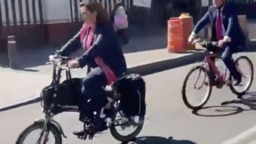 "Acabamos de salir de preparar nuestro discurso para la inscripción, ya mi registro en el INE, vamos a tomar la bicicleta, es un tramo relativamente corto, allá nos vemos", dijo la candidata quien estuvo acompañada por varios ciclistas durante su recorrido y llegada al Instituto Nacional Electoral.