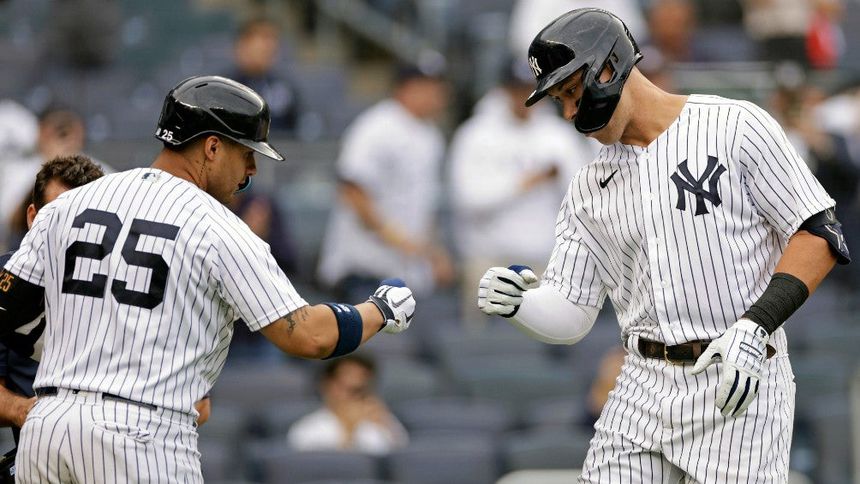 Aaron Judge puso en marcha la remontada en el primer juego, con su 55to jonrón de la campaña, para liderar las mayores; Isiah Kiner-Falefa disparó un grand slam en el segundo encuentro, y los New York Yankees vencieron a los Minnesota Twins por 4-5 y 1-7 en una doble cartelera.