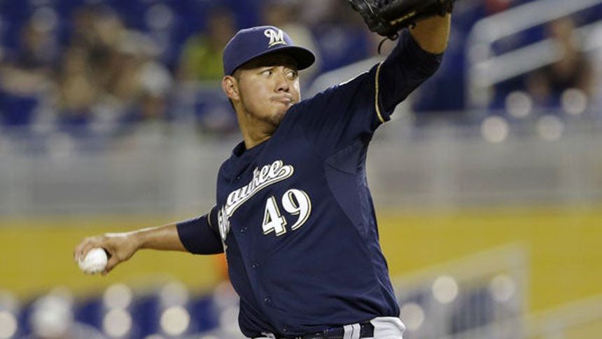 Gallardo en acciones del juego ante Marlines | AP
