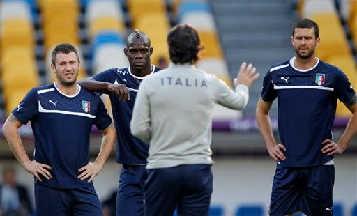 Cesare Prandelli, Antonio Cassano, Mario Balotelli y Thiago Motta l AP